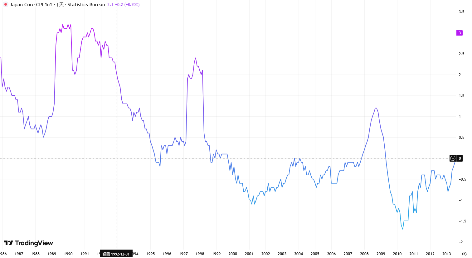 - 1998年4月:核心CPI同比跌至-0.1%,此后五年多时间内持续为负