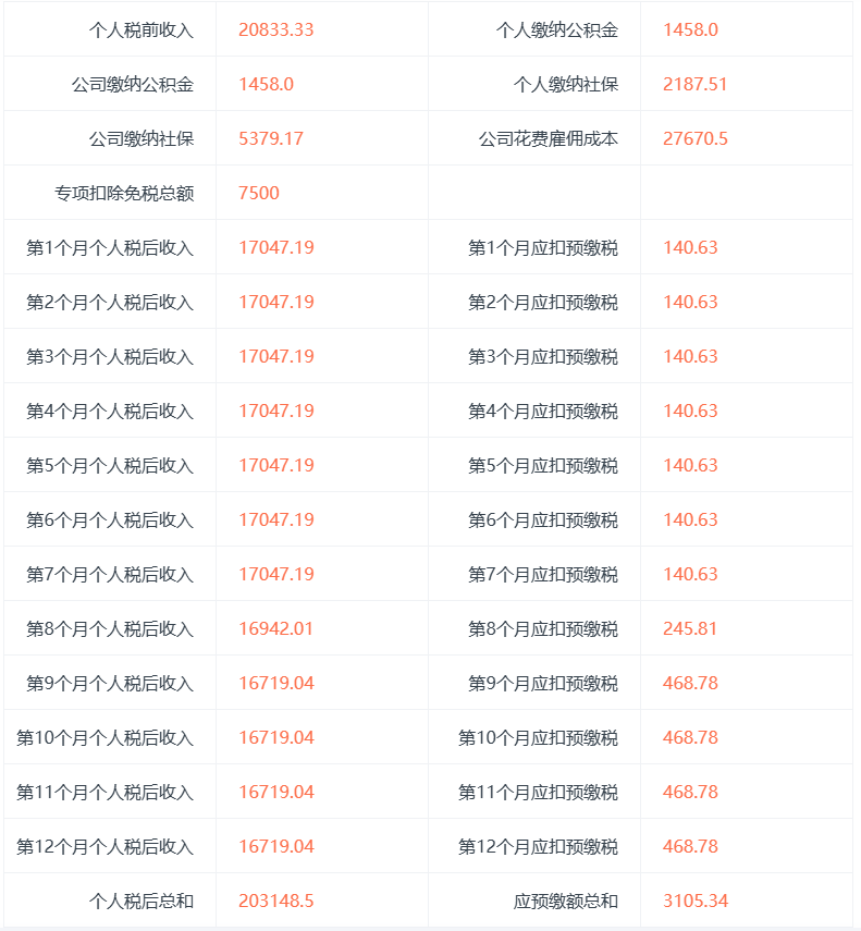 那么家庭税后年薪为: 203148.5 * 2 = 406297